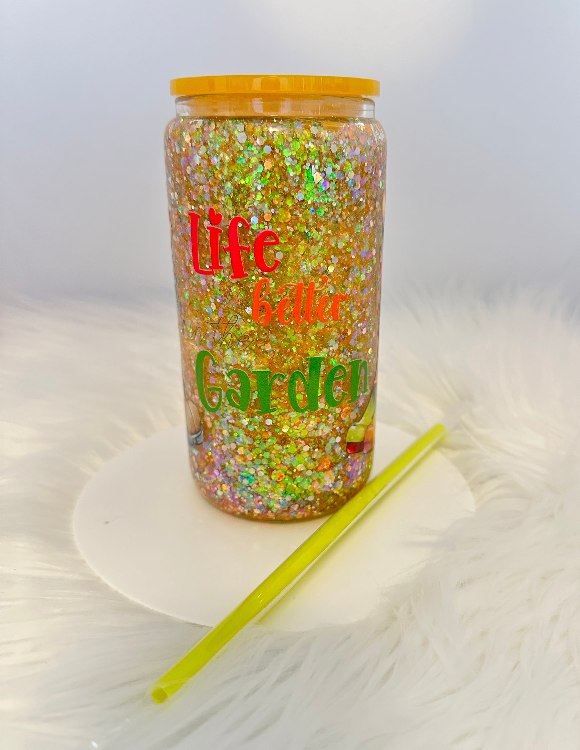 Comes complete with a wrap that says ‘Life is Better in the Garden’ surrounding the tumbler along with a matching lid and straw